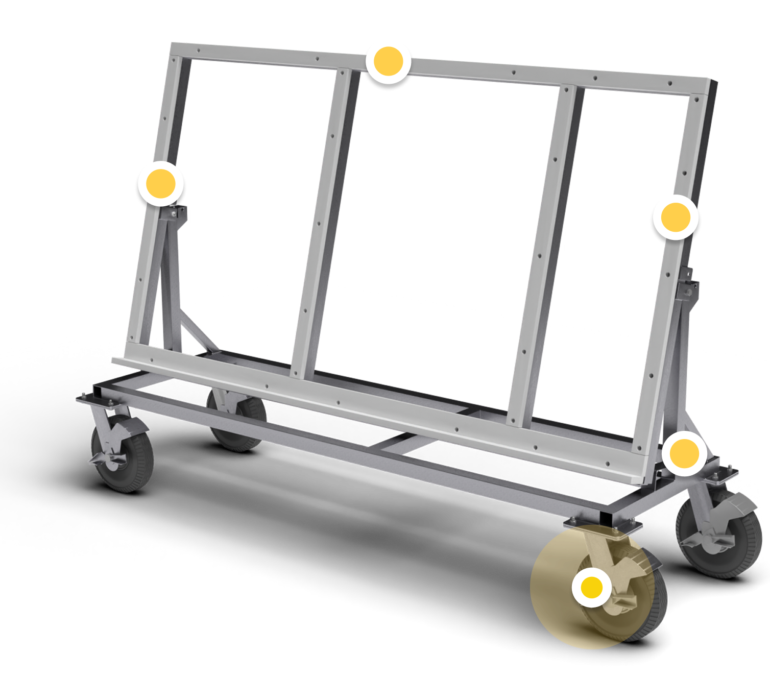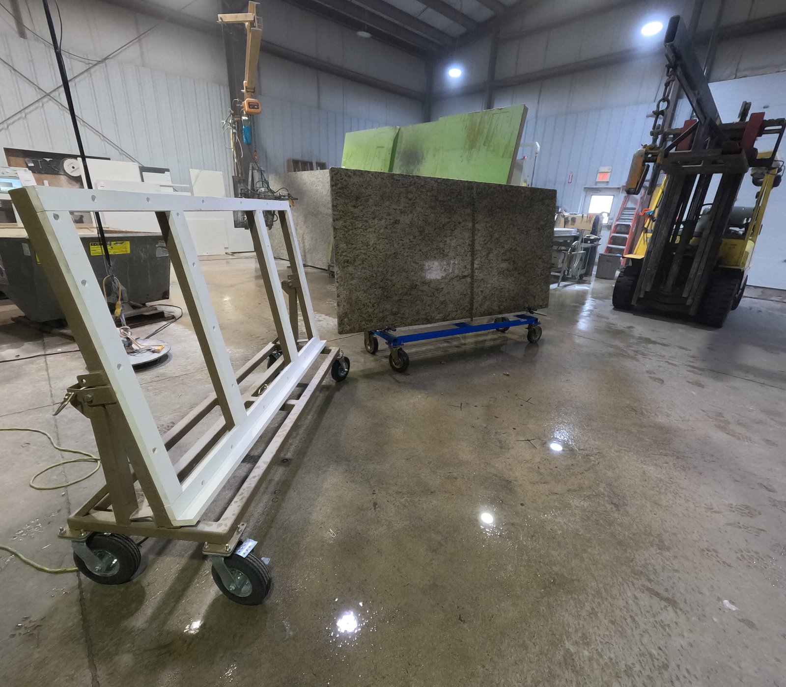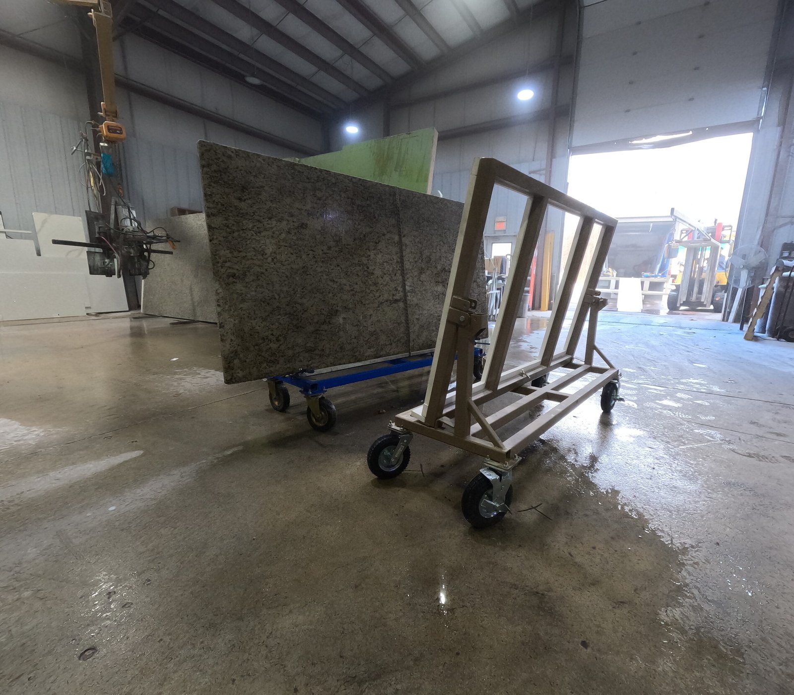 Easy tilt system with a built-in counterbalance hinge. Lets one person safely tip and move heavy stone slabs without strain.